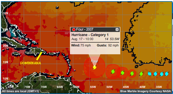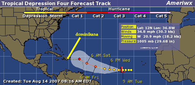 Przewidywany czas zmiany tropikalnego sztormu 4 w huragan Dean