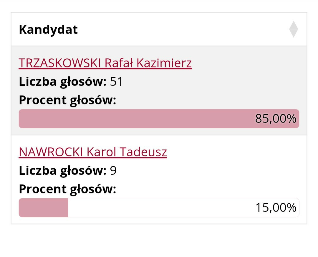 Na Rafała Trzaskowskiego zagłosowało 51 wyborców na Karola Nawrockiego 9 wyborców.